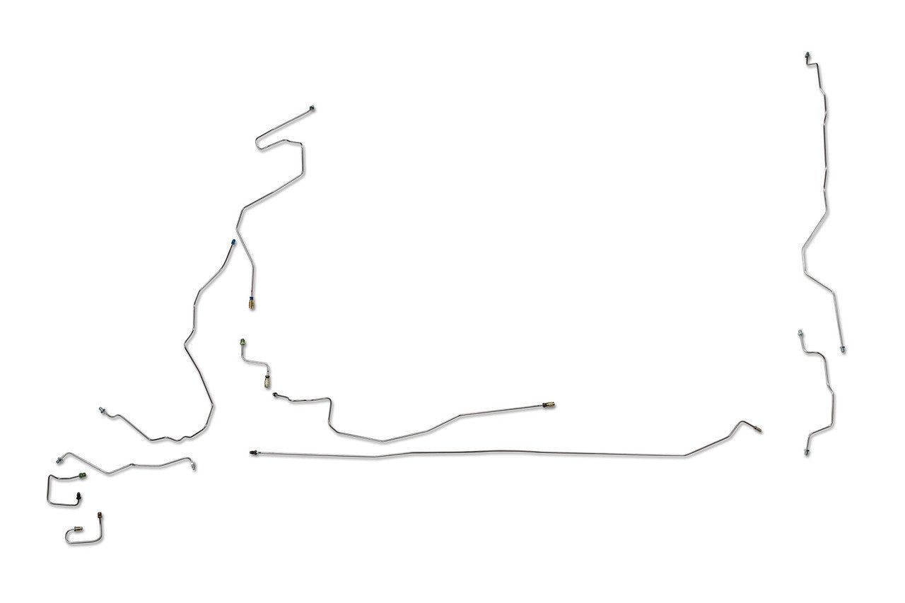 1 Master Cylinder Primary Brake Line 3/16", 1 Master Cylinder Secondary Brake Line 3/16", 1 Left Front Brake Line 3/16", 1 Right Front Brake Line 3/16" (in 2 easy to install sections), 1 Rear Brake Line 3/16" (in 3 easy to install sections), 1 Rear Axle Crossover Line 3/16" (2 sections), Does NOT include Brake Hoses