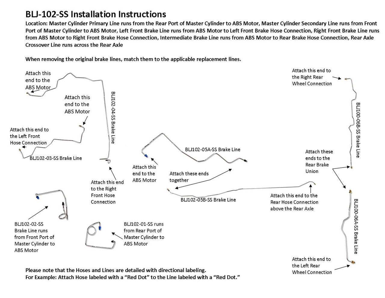 Please Note: Before installing your brake line, a shipping twist will need to be removed from the lines labeled BLJ102-04-SS and BLJ102-05B-SS. See the video below on how to remove the shipping twist
