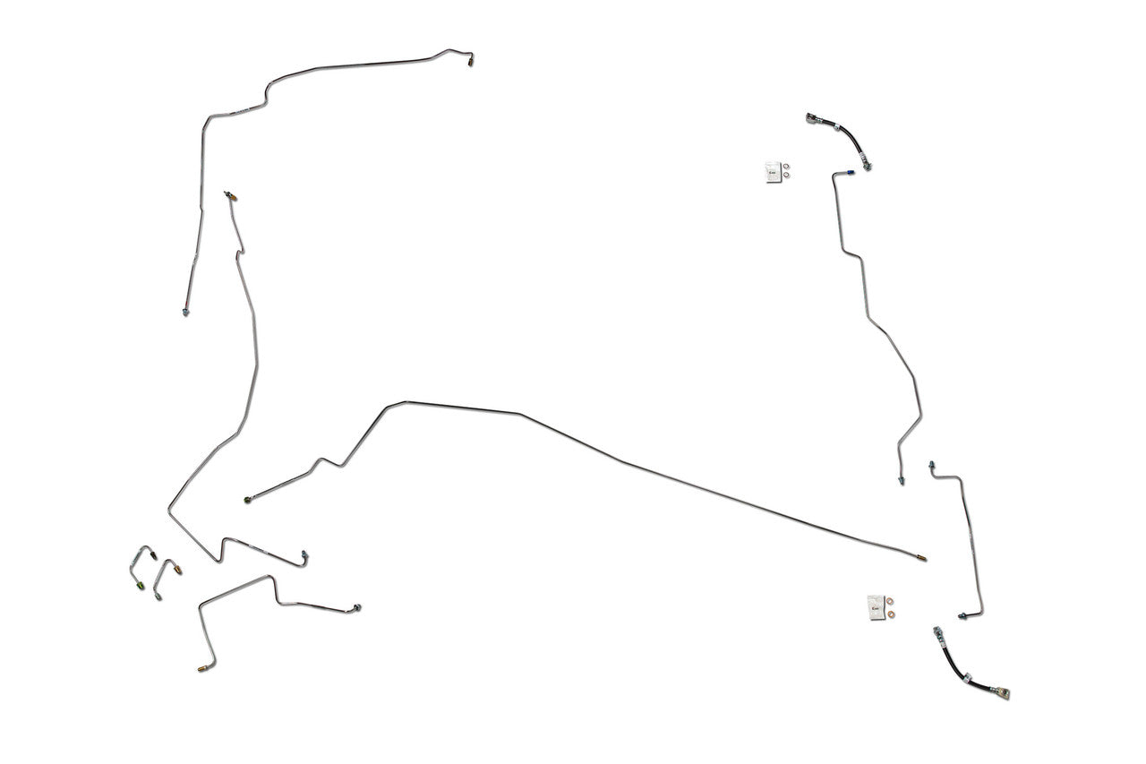 1 Master Cylinder Primary Brake Line 3/16", 1 Master Cylinder Secondary Brake Line 3/16", 1 Left Front Brake Line 3/16", 1 Right Front Brake Line 3/16" (in 2 easy to install sections), 1 Rear Brake Line 3/16" (in 2 easy to install sections), 1 Rear Axle Crossover Line (2 sections), 2 Brake Hoses for Rear Wheels Does NOT include Front Brake Hoses