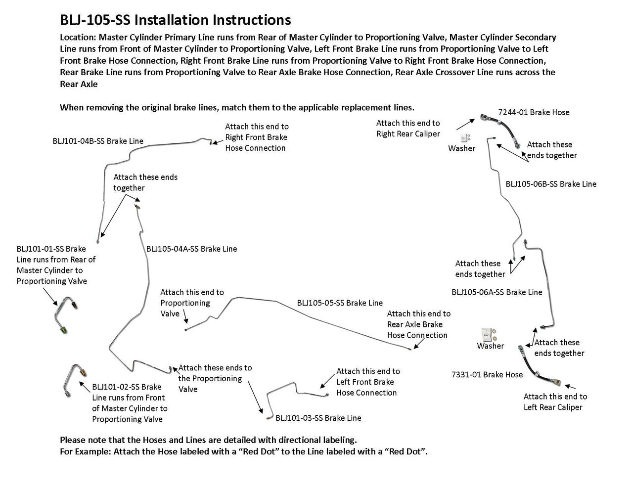 Please Note: Before installing your brake lines, a shipping bend will need to be removed from the lines labeled BLJ101-04B-SS and BLJ101-05-SS. See the video below on how to remove the shipping bend