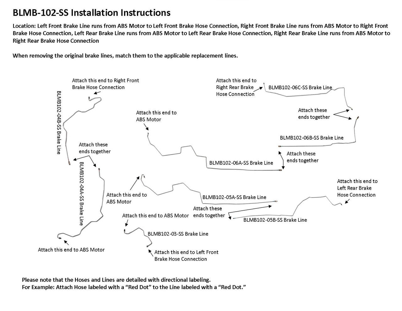 Please Note: Before installing your brake line, a shipping bends will need to be removed from the lines labeled BLMB102-03-SS , BLMB102-05A-SS  and BLMB102-06A-SS. See the video below on how to remove the shipping bend