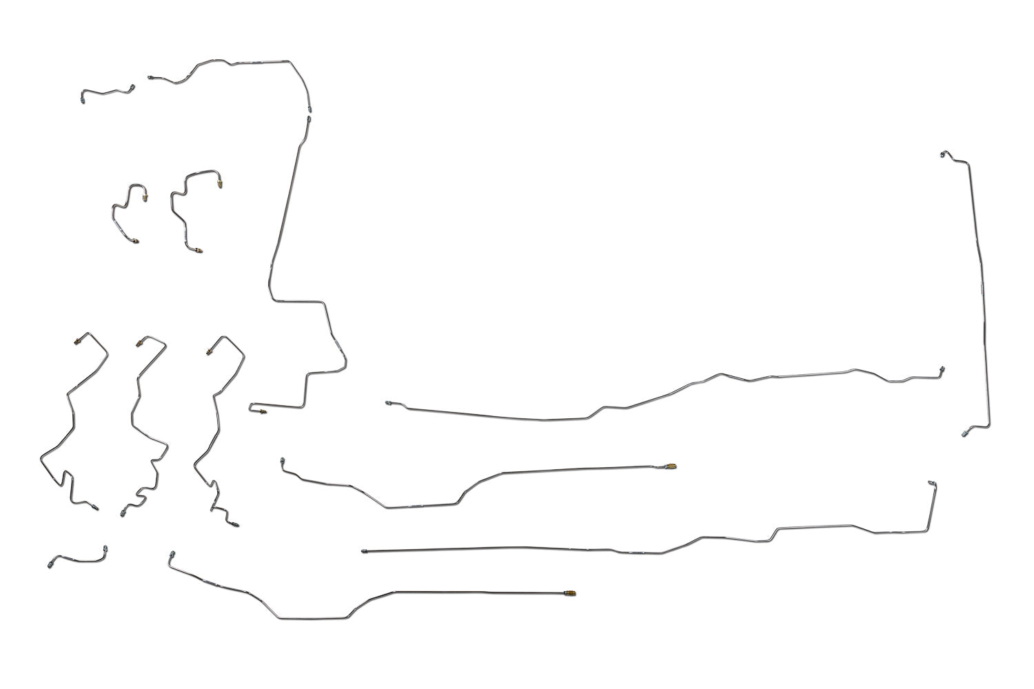 1 Master Cylinder Primary Brake Line 1/4", 1 Master Cylinder Secondary Brake Line 1/4", 2 Left Front Brake Lines 3/16" , 2 Right Front Brake Lines 3/16" (in 3 easy to install sections), 2 Left Rear Brake Lines 3/16" (in 3 easy to install sections), 2 Right Rear Brake Lines 3/16" (in 4 easy to install sections), Does NOT include Brake Hoses