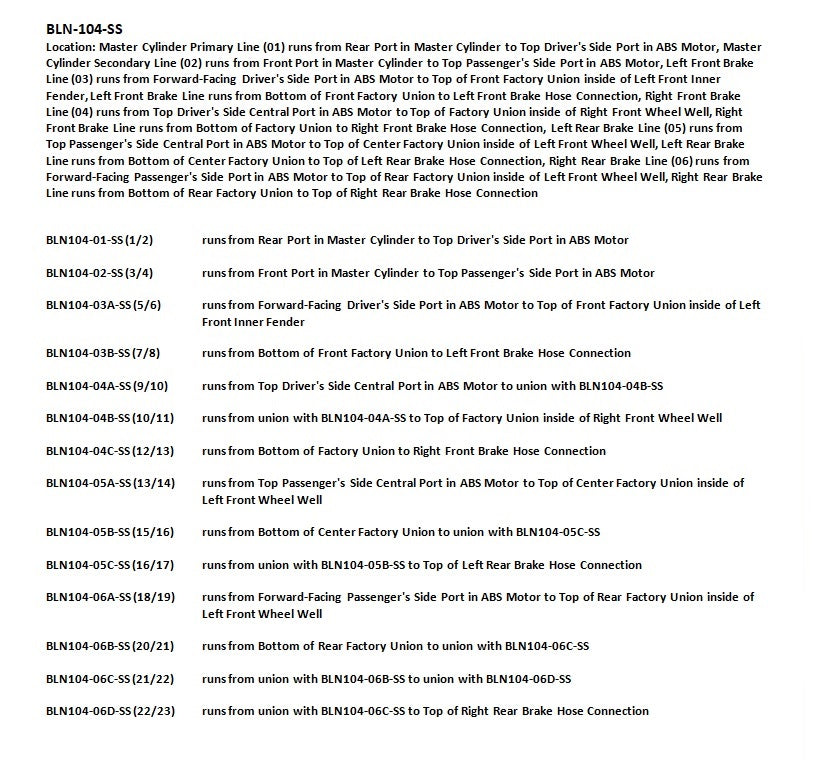 Lines are constructed from Stainless Steel tubing for rust protection with original equipment end forms and fittings and are CNC (Computer Numerically Controlled) bent for an easy precise installation