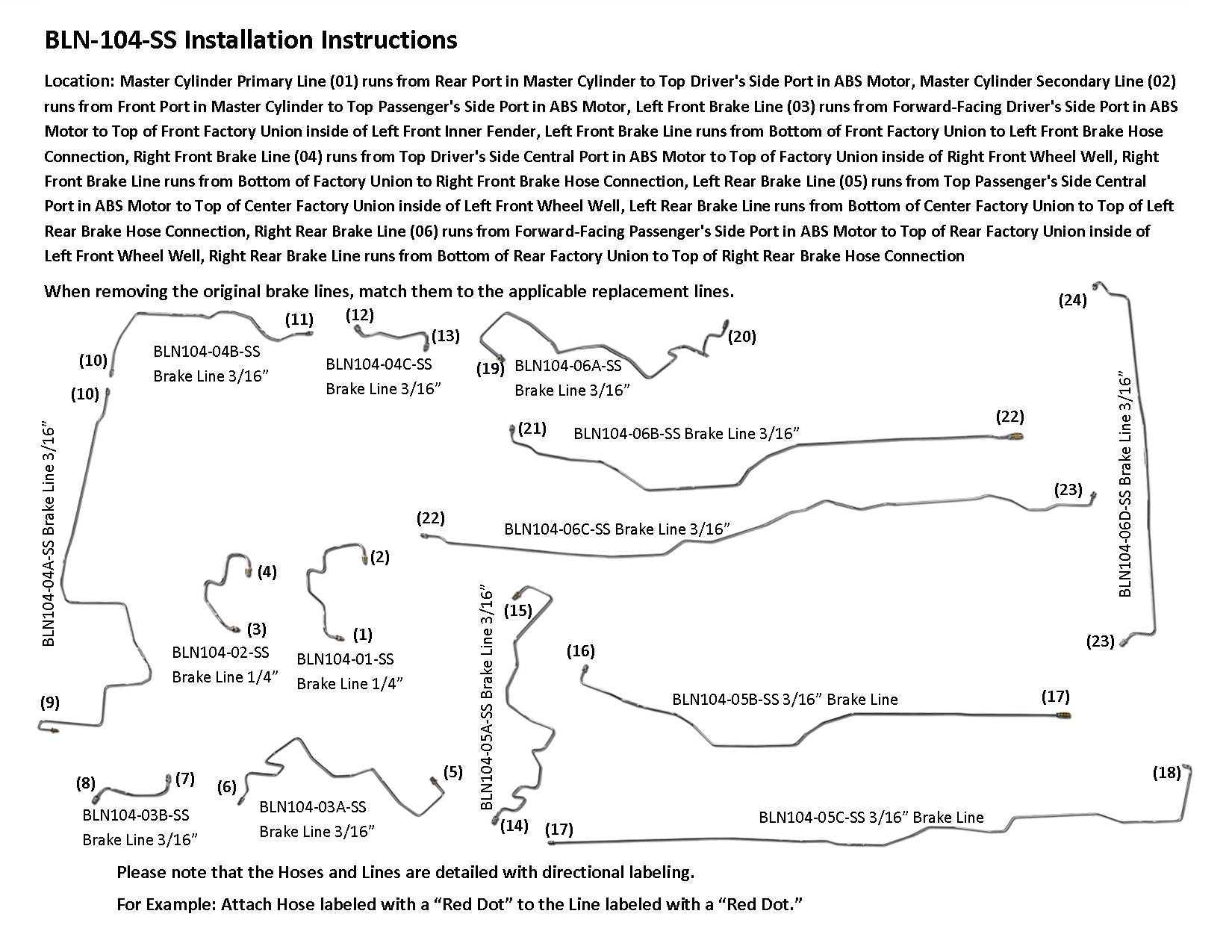 Please Note: Before installing your brake line, shipping bends will need to be removed from the lines labeled BLN104-05C-SS and BLN104-06C-SS. See the video below on how to remove the shipping bend