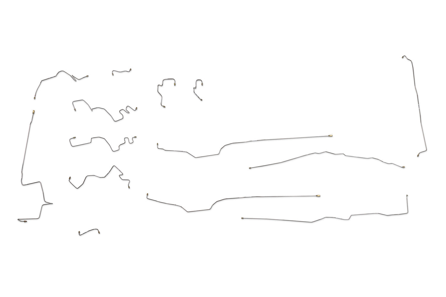 1 Master Cylinder Primary Brake Line 1/4", 1 Master Cylinder Secondary Brake Line 1/4", 1 Left Front Brake Line 3/16", 1 Left Front Brake Line 3/16", 1 Right Front Brake Line 3/16" (in 2 easy to install sections), 1 Right Front Brake Line 3/16", 1 Left Rear Brake Line 3/16", 1 Left Rear Brake Line 3/16" (in 2 easy to install sections), 1 Right Rear Brake Line 3/16", 1 Right Rear Brake Line 3/16" (in 3 easy to install sections), Does NOT include Brake Hoses