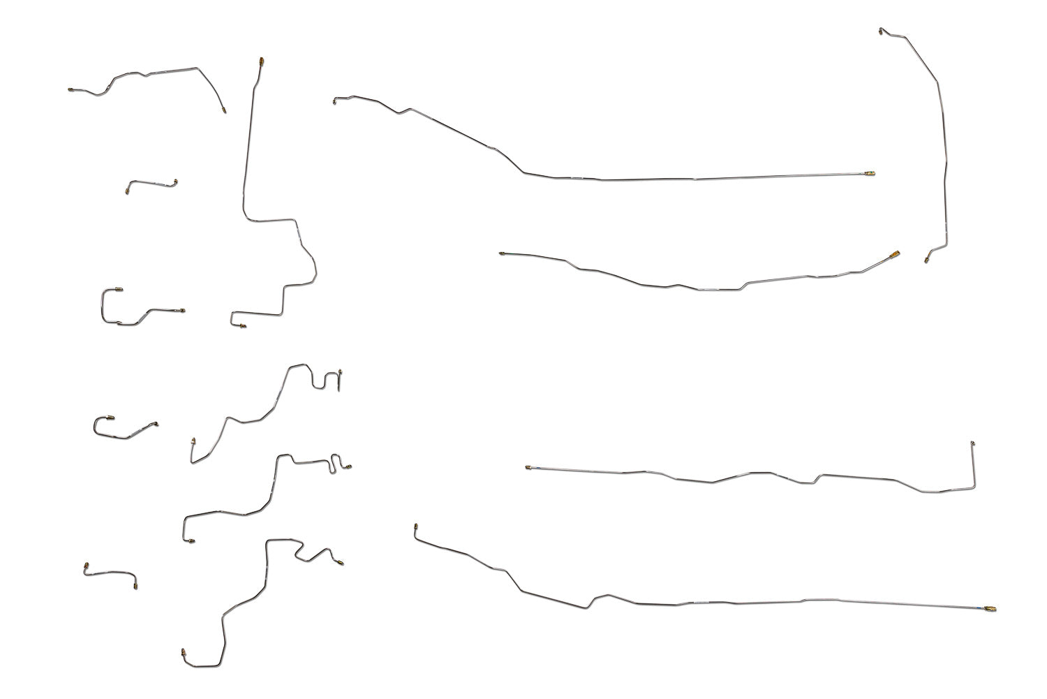 1 Master Cylinder Primary Brake Line 1/4", 1 Master Cylinder Secondary Brake Line 1/4", 1 Left Front Brake Line 3/16", 1 Left Front Brake Line 3/16", 1 Right Front Brake Line 3/16" (in 2 easy to install sections), 1 Right Front Brake Line 3/16", 1 Left Rear Brake Line 3/16", 1 Left Rear Brake Line 3/16" (in 2 easy to install sections), 1 Right Rear Brake Line 3/16", 1 Right Rear Brake Line 3/16" (in 3 easy to install sections), Does NOT include Brake Hoses