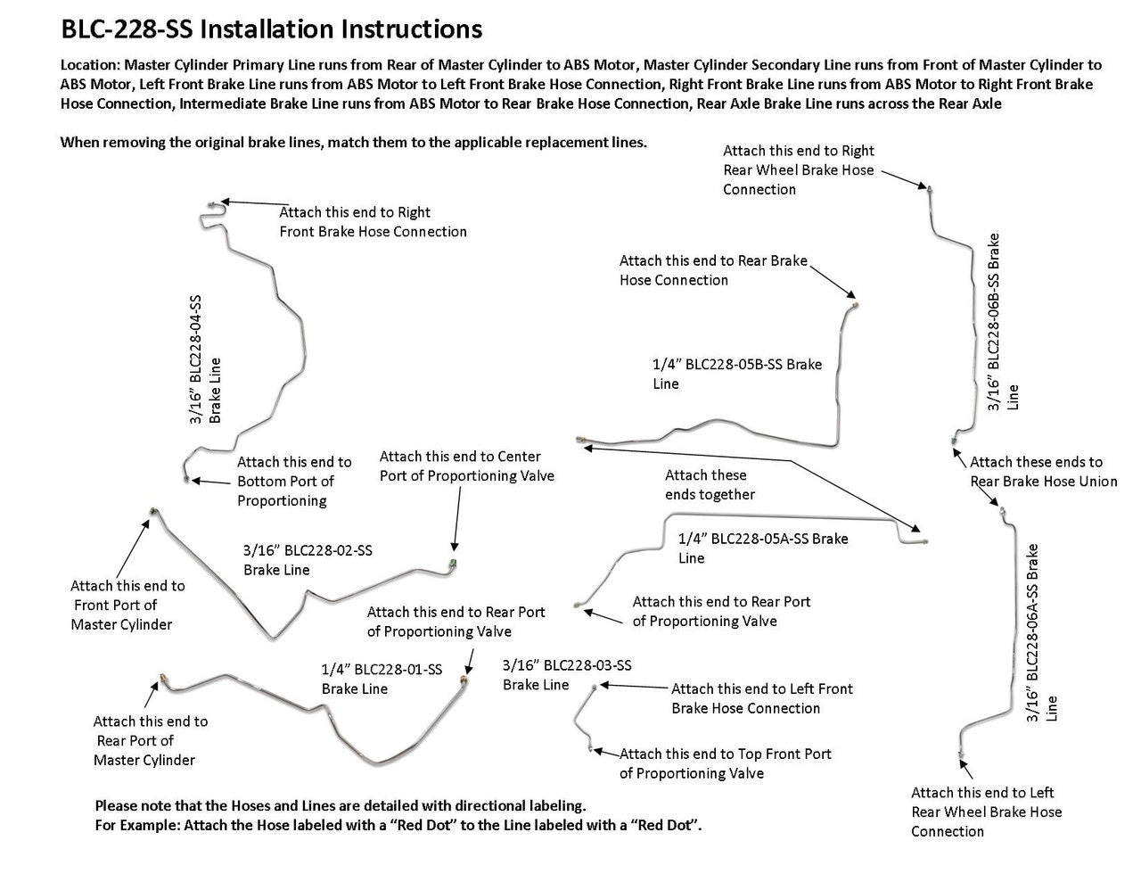 Please Note: Before installing your brake line, a shipping bend will need to be removed from the lines labeled BLC228-05A-SS, BLC228-05B-SS. See the video below on how to remove the shipping bend