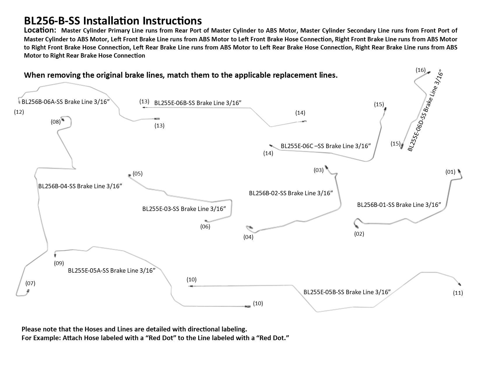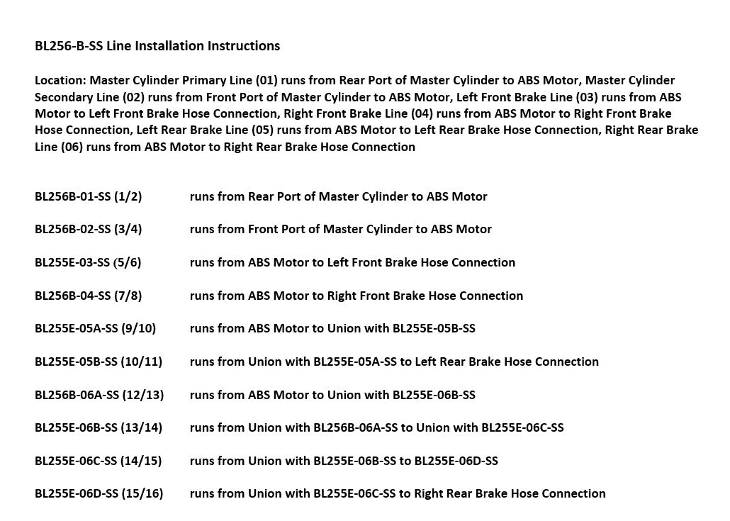 Please Note: Before installing your brake line, a shipping bend will need to be removed from the lines labeled BL255E-05A-SS, BL255E-05B-SS and BL255E-06B-SS. See the video below on how to remove the shipping bend