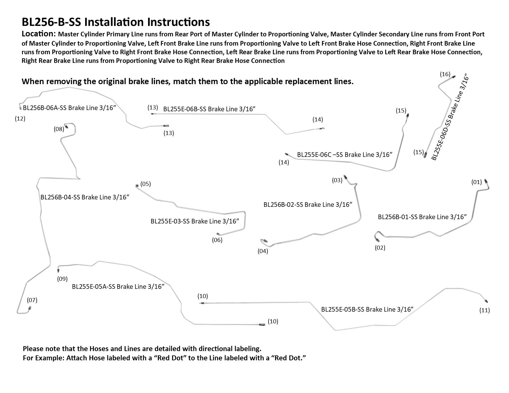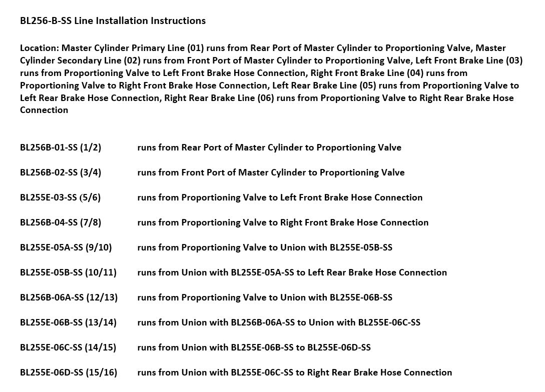 Please Note: Before installing your brake line, a shipping bend will need to be removed from the lines labeled BL255E-05A-SS, BL255E-05B-SS and BL255E-06B-SS. See the video below on how to remove the shipping bend