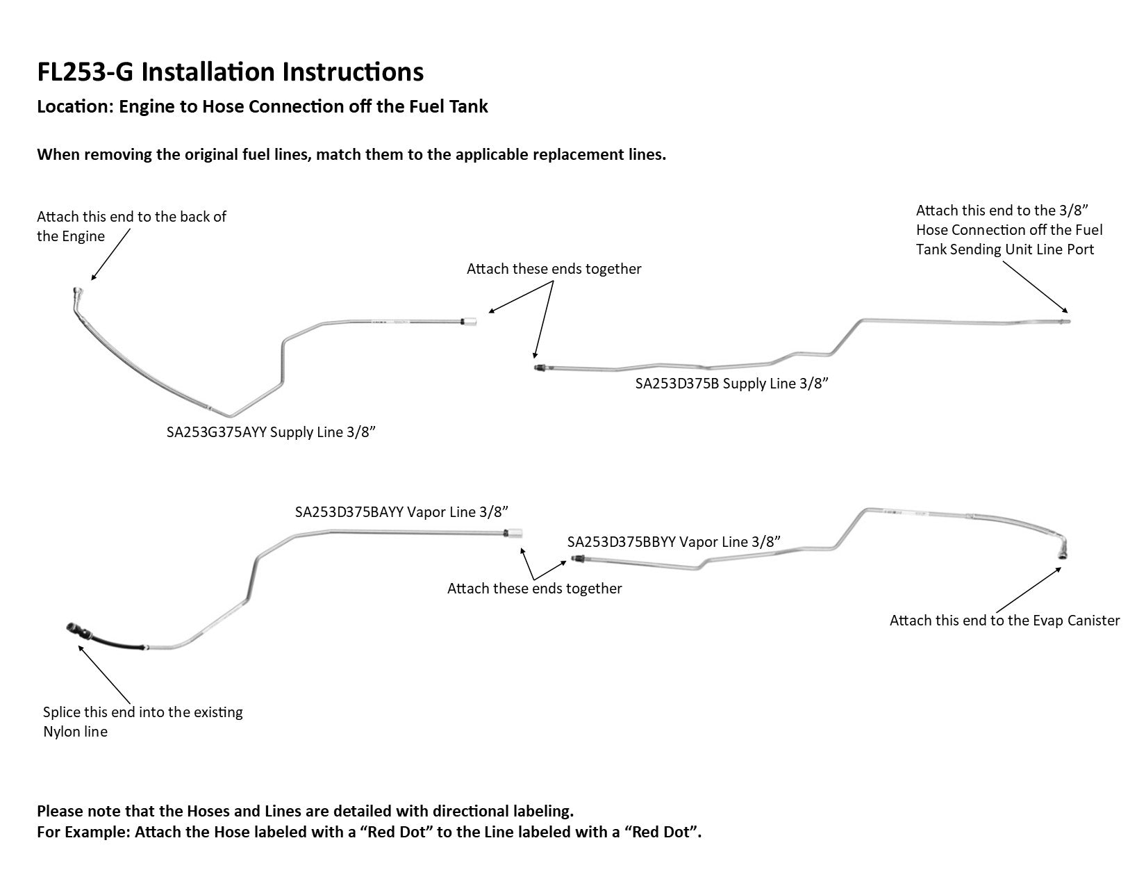 Nylon Lines: We do not produce pre-formed nylon lines and they are not included with your fuel lines. However, repair kits are available which will attach to your existing nylon lines providing new connectors for the fuel supply and return lines. The original connections are often seized and damaged during install.