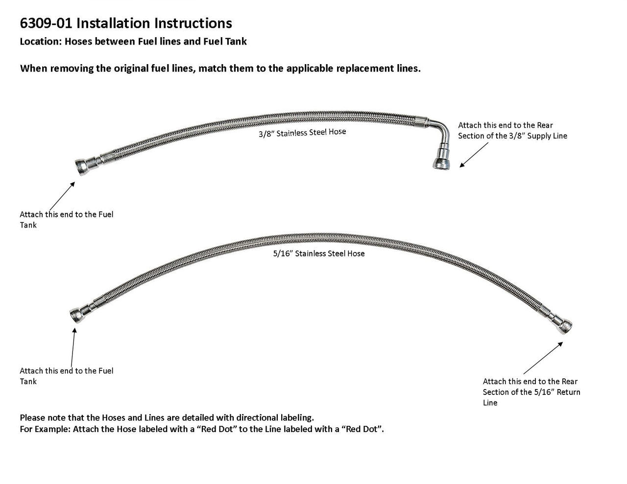 Stainless Steel Braided Teflon Hoses between fuel lines and fuel tank 2001 Chevy S10 6309-01A5