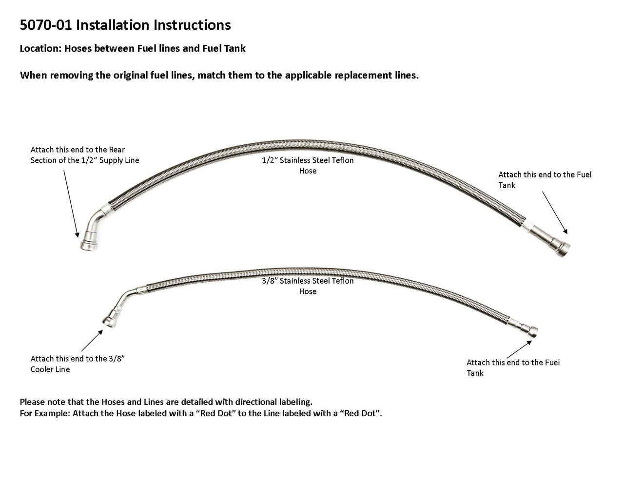 Chevy Silverado/GMC Sierra 2500HD/3500/3500HD Stainless Steel Braided Teflon Hoses 2002 Between Fuel Lines and Fuel Tank Duramax Diesel 6.6L 5070-01B