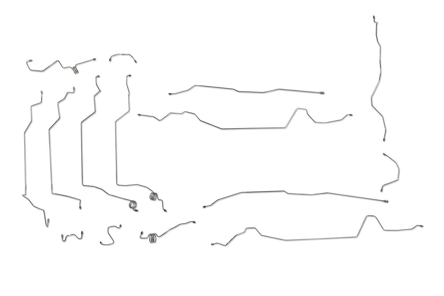 1 Master Cylinder Primary Brake Line 3/16", 2 Master Cylinder Secondary Brake Lines 3/16", 2 Left Front Brake Lines 3/16", 2 Right Front Brake Line 3/16", 2 Rear Brake Lines 3/16" (in 3 easy to install sections), 2 Vehicle Stability Control Lines 3/16" (in 3 easy to install sections), 2 Rear Axle Lines 3/16", Does NOT include Brake Hoses
